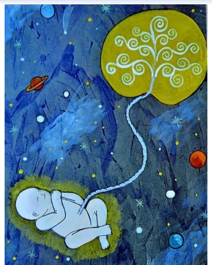 那張寶寶與胎盤相連在宇宙星辰中的圖,