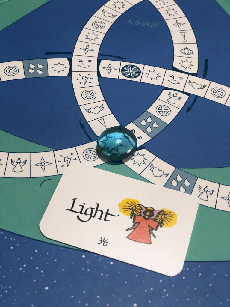 🌈某部分跟家族排列很像,紙牌就像某部分的人生被排列出來。面對眼淚牌,要用覺知代幣換掉眼淚,就可以繼續擲骰子前進,理性上知道要這樣玩,心裡是不願意的,寧願受苦就是。直到我在心裡說著 好啦!我面對就是了!我願意清掉眼淚,擲骰子就馬上收集到覺知代幣,真的很神奇。內在宣告是有力量的!