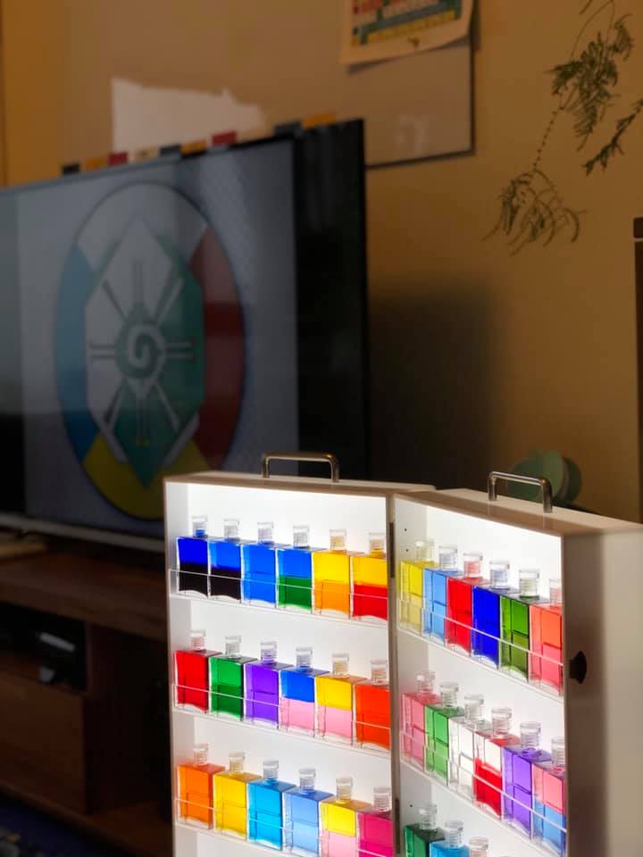 點上蠟燭、放上彩油瓶,