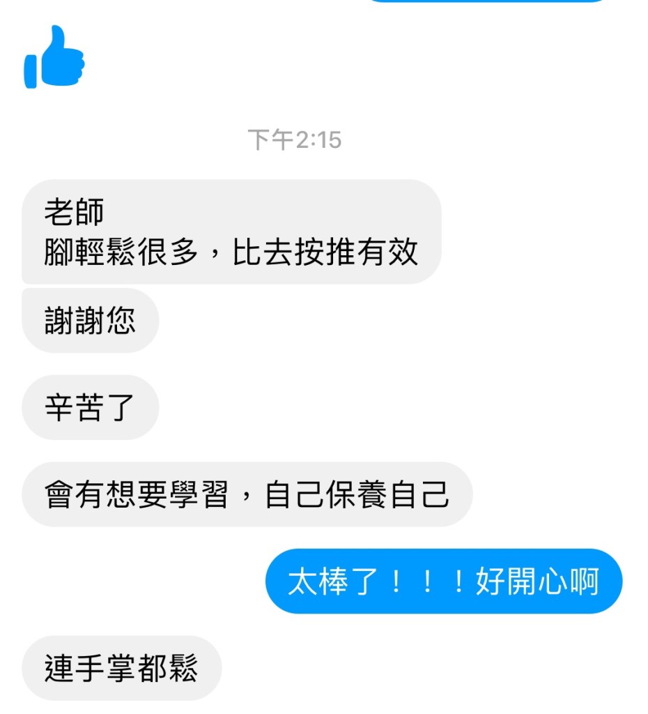 昨日頌缽個案從我這邊離開後,傳了訊息給我。