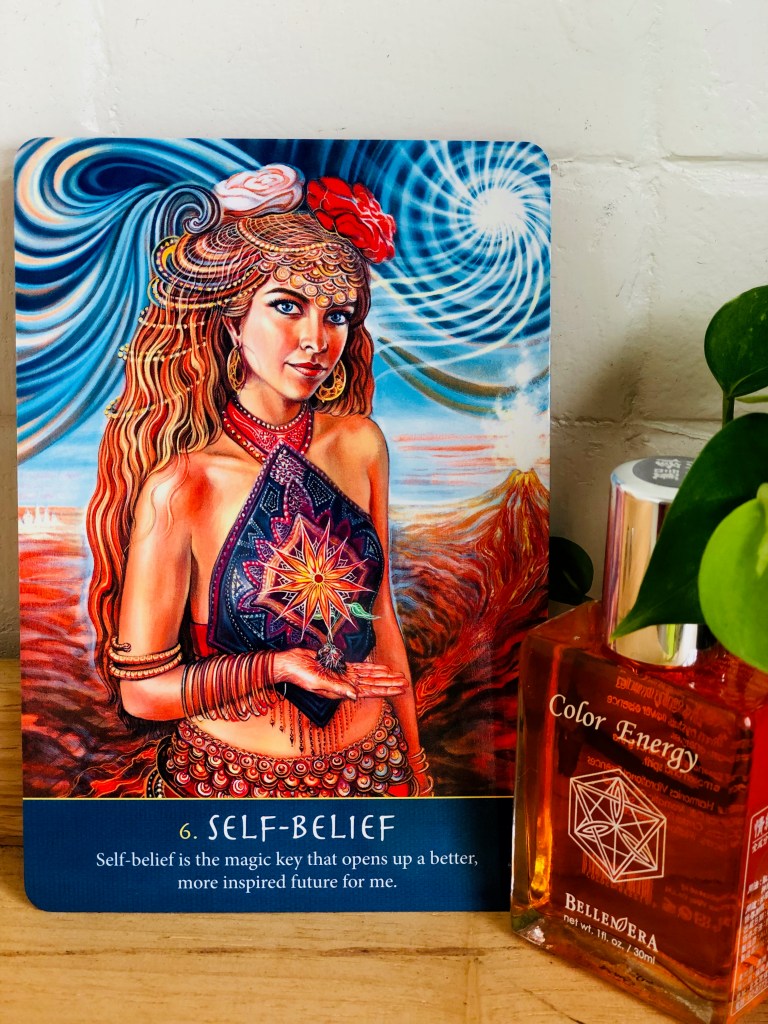 才想起來,橘色的花晶跟連兩天抽到的卡,背景色是一樣的。大地的火山正在噴發,地球正在加速轉化。雲捲風飛,女子手裡握著的綠苗會生出心輪的火焰。護衛著這個小芽,你不知道,在未來,它將要長成什麼綠蔭。現在只見火,火的背後,會有綠意。